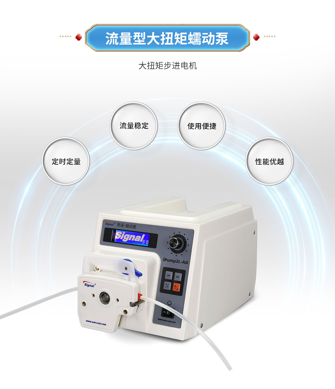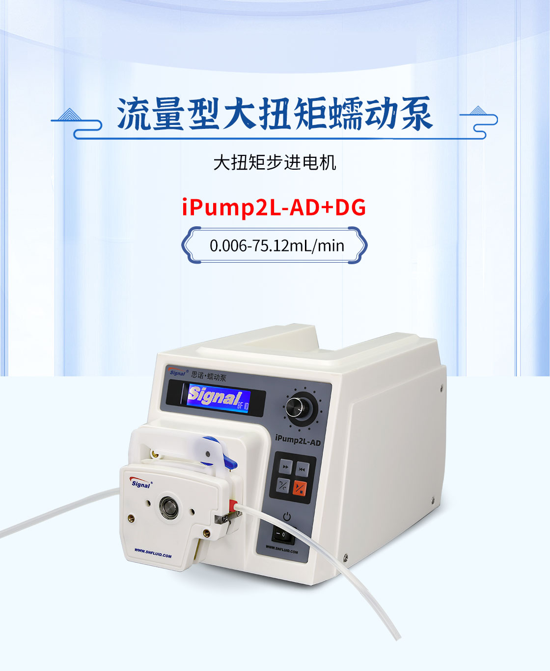 2.大扭矩步進電機驅(qū)動,適合多泵頭串聯(lián)使用;